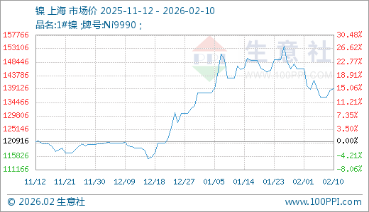 据生意社监测,镍02月10日最新价格139250.00元/吨,最近60天上涨17.38%。
